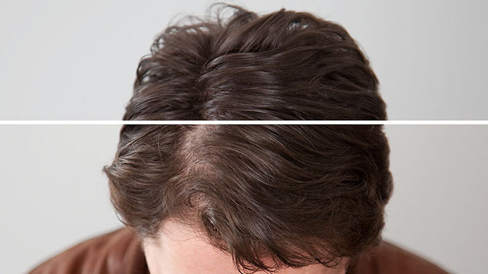 Wash and dry hair before styling and then sprinkling VOLUME HAIR FIBERS over affected areas, keeping the container around 2-3 inches above the scalp.